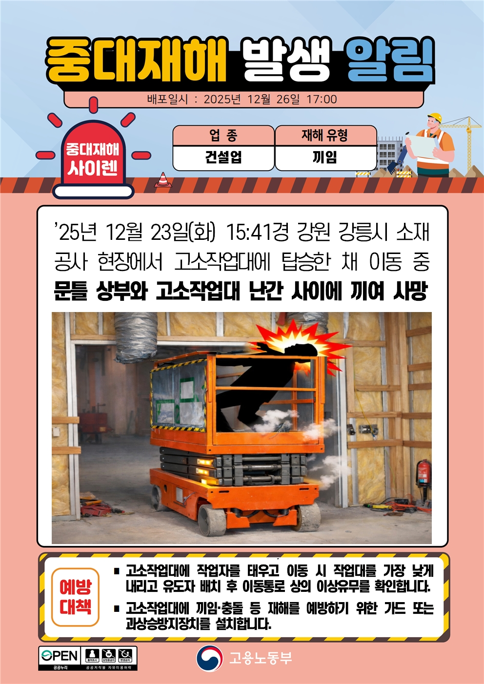 중대재해 발생 알림 - 건설